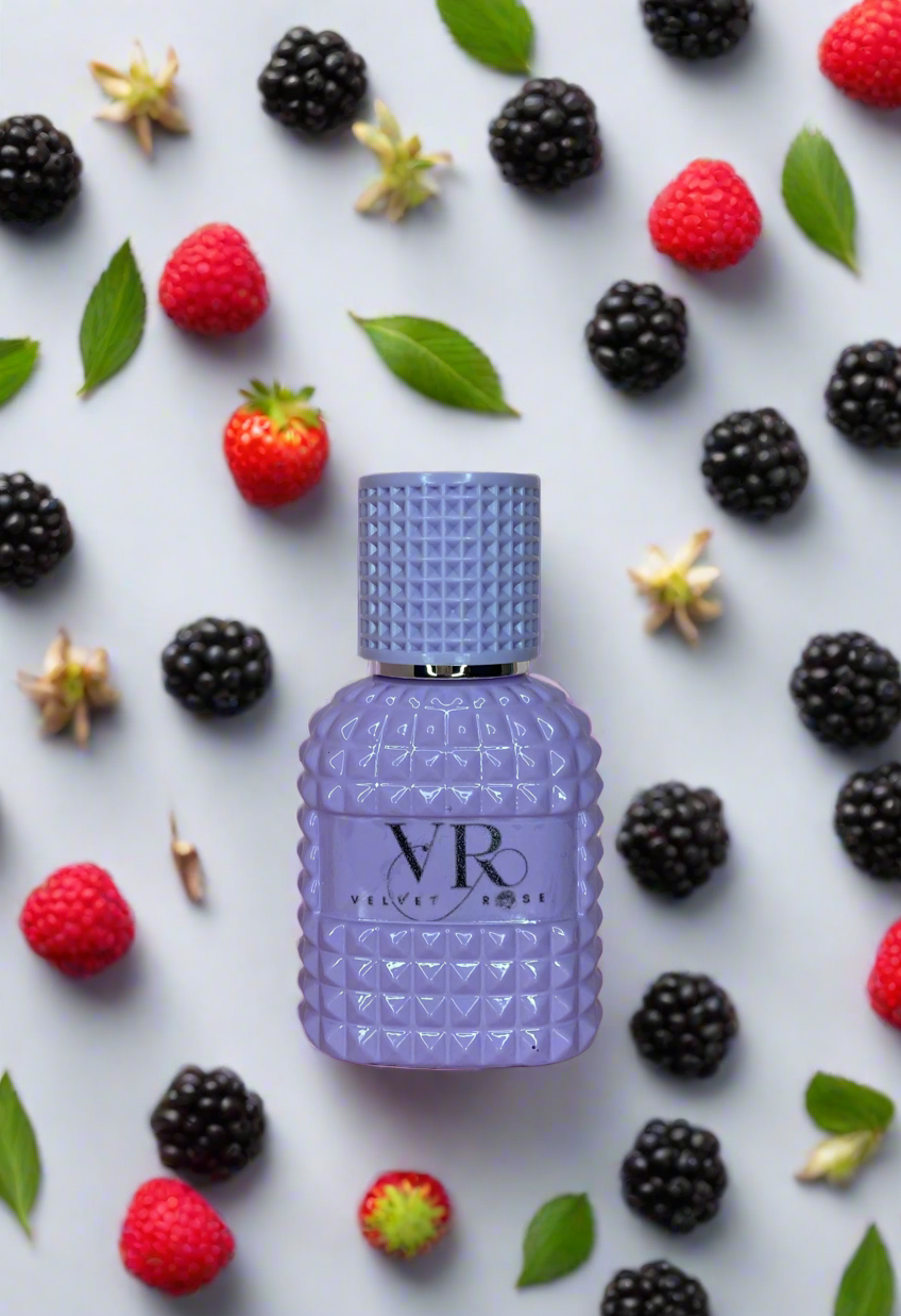 Top notes of Strawberry, Raspberry, and Blackberry combine with middle notes of Violet and Jasmine, creating a fruity and floral aroma. The base notes of Musk, Vanilla, and Amber add a touch of warmth and depth.